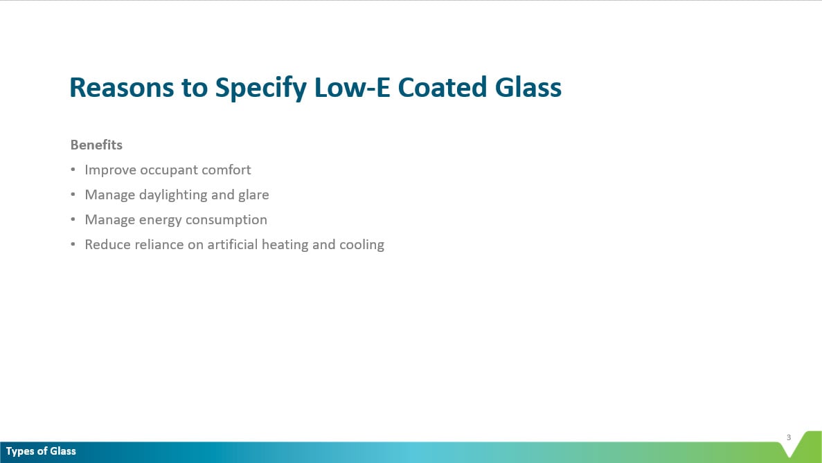 Choosing the right architectural glass is crucial to a successful project. For more informed decisions in the evaluation, selection and specification of architectural glass, Vitro Architectural Glass (formerly PPG glass) recommends becoming familiar with the properties and benefits of the four most common glass types: low-e coated glass, clear glass, low-iron glass and tinted glass.